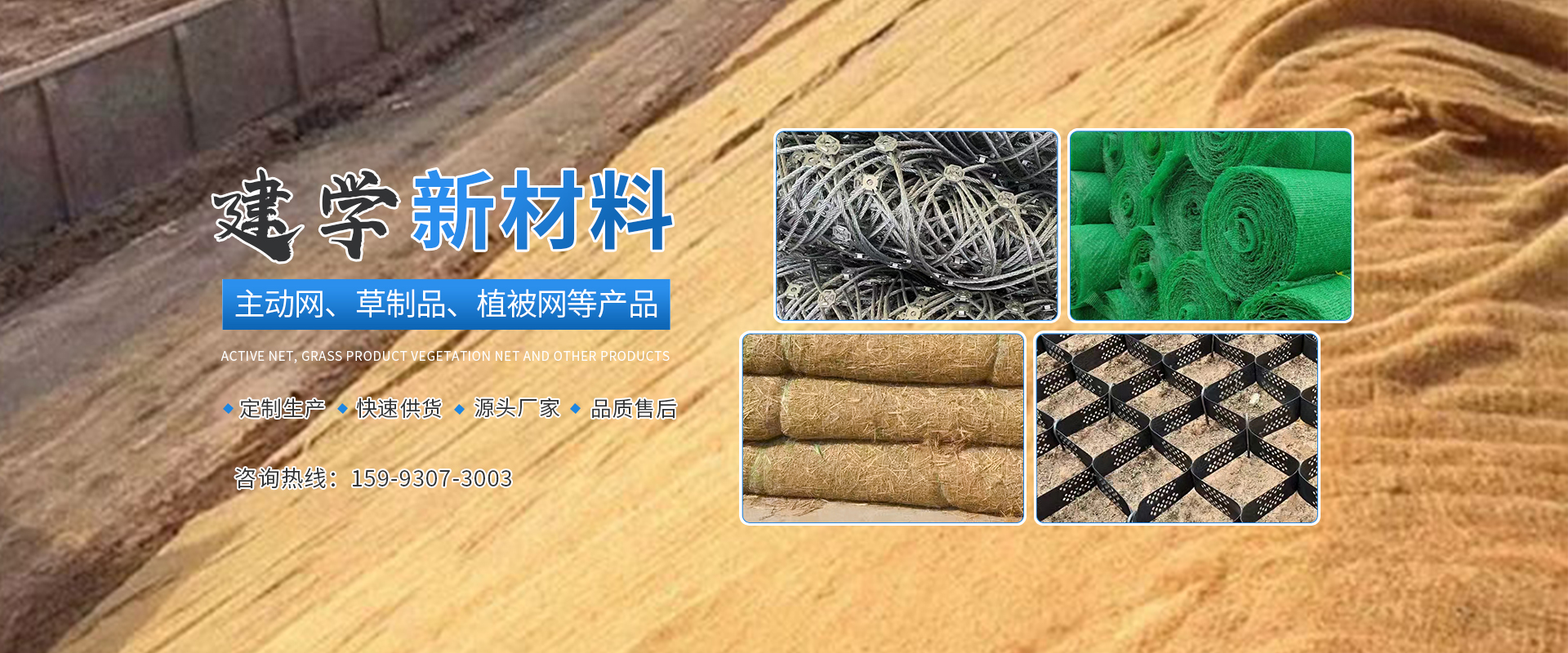 河南省建學新材料有限公司位于風景秀麗的河南省新鄉市原陽縣,我們專注于為廣大客戶提供一系列品質優的邊坡綠化及礦山復綠產品。公司主營業務涵蓋主動網、勾花網、鐵絲網、稻草毯、三維網、椰絲網、土工格室、草棒、草支墊、草纖維、稻殼,植生袋等一系列邊坡綠化及礦山復綠產品。這些產品廣泛應用于鐵路、公路、水利、礦山、園林等工程領域,對于防止水土流失、改善生態環境、促進綠色礦山建設具有明顯的效果。我們深知邊坡綠化與礦山復綠工作對于改善生態環境、促進可持續發展具有重要意義。因此,我們積極推廣綠色、環保的建材產品,努力為每一片土地帶來生機與活力。我們還提供全方位的服務,從產品咨詢、選型推薦到物流配送、售后服務,我們都會為客戶提供貼心、周到的服務。我們始終堅持以客戶為中心,以滿足客戶需求為己任,力求為每一位客戶帶來滿意的購物體驗。展望未來,河南省建學新材料有限公司將繼續秉承“質量為本、客戶為上”的經營理念,不斷提升服務質量,拓寬銷售渠道,與更多的合作伙伴攜手共進,共同推動邊坡綠化與礦山復綠事業的發展。我們堅信,在大家的共同努力下,我們的生態環境將會變得更加美好。
